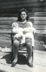 Régina Charron holding twin sons